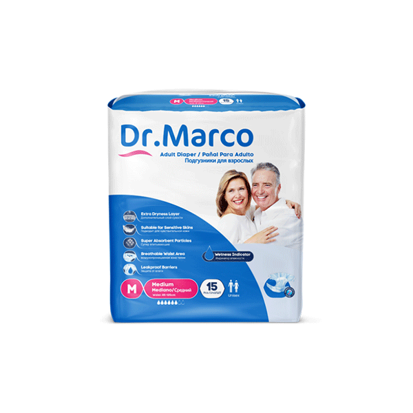 Dr Marco Adult Unisex Diapers Size – Medium (15 pcs)